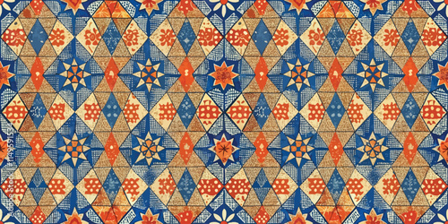orange, blue, cream, textile design, symmetric, decorative, star, diamond, intricate pattern, bold, creative, modern, artistic, abstract, background, wallpaper, fabric, print, color palette, home decor, stylish, retro, traditional, design element, fashion, unique, aesthetic, whimsical, patterned, textured, versatile, eye-catching, chic, original, craft, colourful, creativity, inspiration, artistry