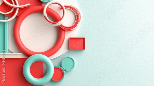 Colorful Geometric Shapes and Circles Arrangement on Soft Textured Surface in Light Pastel Tone