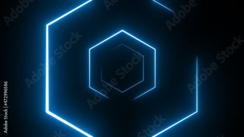 Colorful glow strokes. Neon light hexagon.