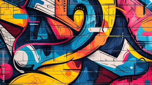 Colorful graffiti painting adorns a textured brick wall creating a striking urban art display