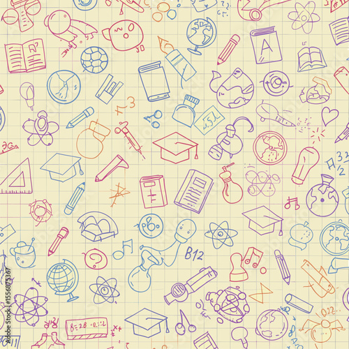Colorful Hand-Drawn Education Seamless Pattern Background