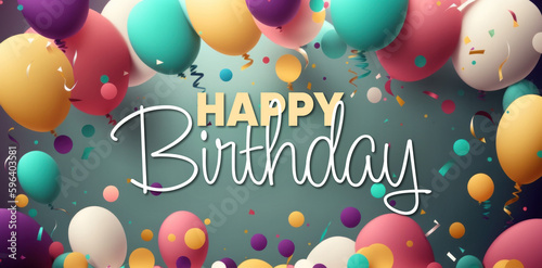 Colorful happy birthday or anniversary background concept with balloons and confetti generative ai