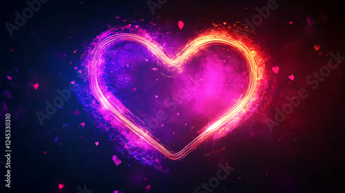 Colorful heart shape glowing on a dark background, symbolizing love and passion.