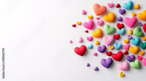 Colorful Heart Shapes on White Background for Celebratory Themes
