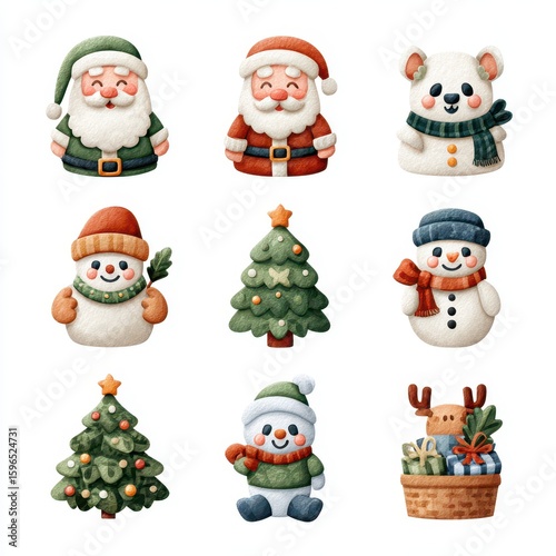 Colorful holiday characters in a festive arrangement perfect for seasonal decorations and celebrations