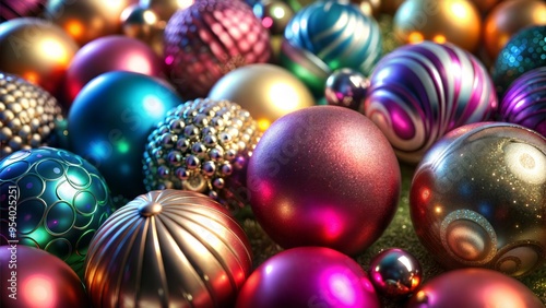 Colorful holiday ornaments in a festive style with a joyful mood representing celebration and cheer