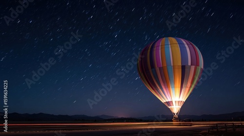 night, balloon, star, trail, colourful, hot, air, flight, sky, dark, landscape, travel, adventure, tour tourism, sunset, sunrise, illuminated, glowing, light, motion, astronomy, photo, nature, beauty, amazing, evening, morning, far, high, up, journey, freedom, calm, peaceful, sparkling, vibrant, horizon, mountain, road, glow, earth, wonder, cosmic, spectacular