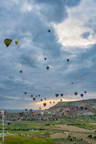 cappadocia, turkey, hot, air, balloon, travel, tour tourism, landscape, nature, sky, sunrise, adventure, flight, colours, colourful, beauty, destination, rock, vale, mountain, scenic, view, floating, activity, life events, exploration, wonder, magic, dream, picturesque, unique, famous, popular, attraction, vacation, holiday, summer, spring, morning, cloud, idylli, peaceful, serene, anatolia, goreme