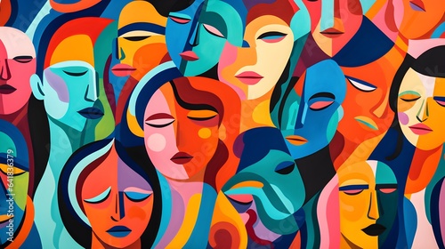 colourful, human, portrait, abstract, art, style, face, bold, graphic, vibrant, serene, people, digital, diverse, chic, illustration, cartoonish, pop art, emotional, emotion, diversity, texture, layer, expressive, creativity, mosaic, modern, visual, culture, audience, fashion, cyberspace, virtual, trendy, digital artwork, painting, imaginative, many-coloured, unique, aesthetic, generative