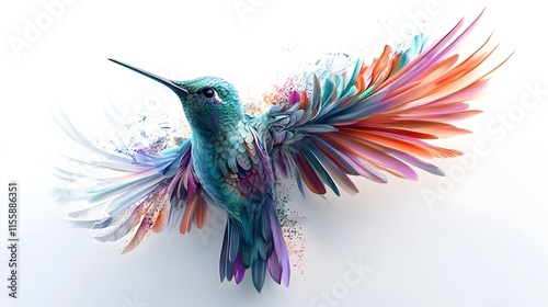 hummingbird, bird, wing, flight, colourful, feather, artistic, paint, splash, vibrant, colours, teal, purple, orange, pink, blue, green, white, art, nature, wildlife, beauty, delicate, graceful, freedom, movement, energy, style, design, illustration, digital, artwork, fantasy, surreal, exotic, tropical, creature, avian, fauna, pattern, texture, abstract, image, photo