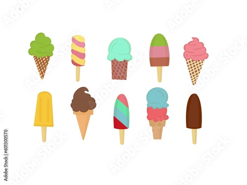 colorful ice cream set sweet and sour For eating in the summer Used as a logo to decorate the shop on a white background.