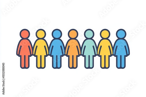 Colorful icon depicting a group of people standing in a line, symbolizing teamwork, collaboration, and focus groups. Ideal for concepts of human resources, community, and customer engagement.