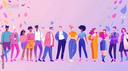Colorful illustration celebrating diverse LGBTQ+ community, pride month.