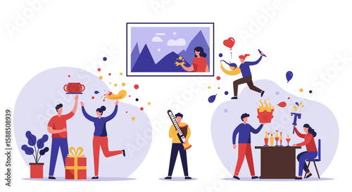 Colorful Illustration of People Celebrating with Various Elements.