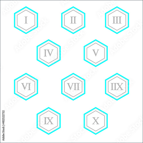 Colorful info-graphic roman numbers can be use to create presentation. Bullet points roman numbers one to ten. Oval shape vector numbers.