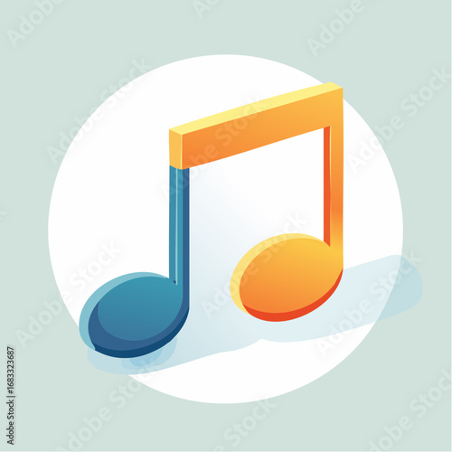 music, note, musical, symbol, icon, digital, art, graphic, design, isometric, geometric, three-dimensional, orange, yellow, blue, gradient, circle, white, background, illustration, element, vector, modern, flat, poster, branding, logotype, theme, sound, melody, tune, composition, audio, rythm, shape