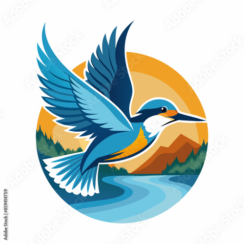 kingfisher, bird, flight, vector, wildlife, nature, colourful, illustration, tropical, wing, river, sunset, forest, blue, orange, water, scenic, environment, ecosystem, wild, avian, freedom, landscape, fauna, conservation, migratory, graphic, artistic, modern, natural, elegant, flying, perched, feather, symbol, exotic, eco, beauty, soaring, adventure, tropical bird, stylish, creative, detailed, trendy