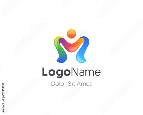 Colorful letter m people logo.