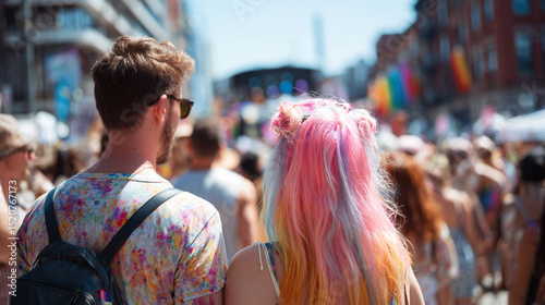 pride, festival, celebration, street, diversity, crowd, summer, colourful, hair, parade, lesbian, gay, bisexual, transgender, community, people, fun, audience, joyful, happiness, social, event, high-coloured, culture, atmosphere, apparel, fashion, accessory, banner, music, dancing, urban, photo, socialising, weekend, love, acceptance, freedom