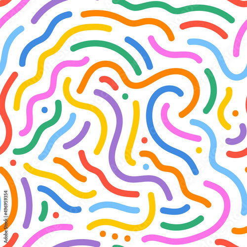 Colorful line doodle seamless pattern. Creative minimalist style art background, trendy design with basic shapes. Modern abstract color backdrop.