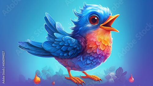 Colorful little bird, cartoon illustration - generative AI, AI generated