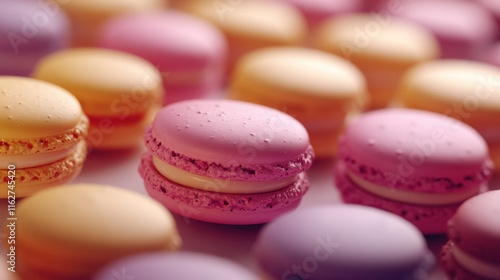 colourful, dessert, sweet, treat, pastry, food, arrangement, pastel, pink, yellow, purple, soft, lighting, spreaded, surface, epicure, confectionery, luxury, delicate, round, texture, favor, tasty, indulgence, bakery, presentation, culinary, aesthetic, visual, fine, party, celebration, event, table, display, closeup, close, vibrant, appetising, design, style, art, beautiful, delightful, random