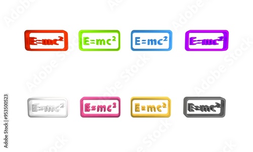 Colorful Math system of equation solution icon isolated on white background. E equals mc squared equation on computer screen. Minimalism concept. 3D render illustration
