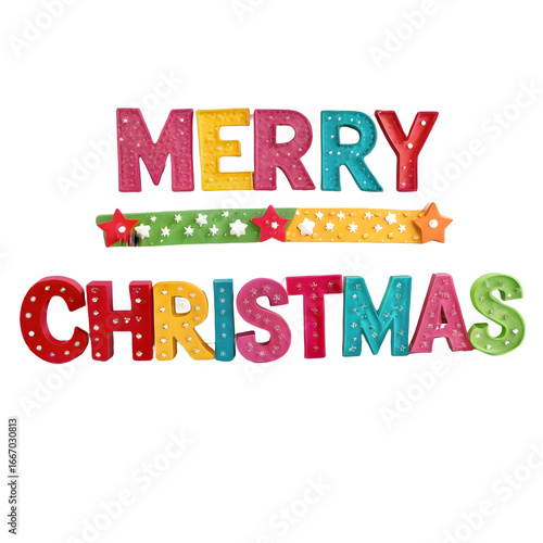 Colorful Merry Christmas Greeting Festive Typography Design for Holiday Cards Invitations and Decorations