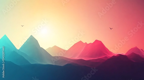 mountain, abstract, peaceful, art, texture, element, colours, digital, background, colourful, high-coloured, sunrise, landscape, minimalist, sky, vibrant, horizon, peak, beauty, sunset, hill, light, view, geometric, nature, design, image, illustration, style, gradient, graphic