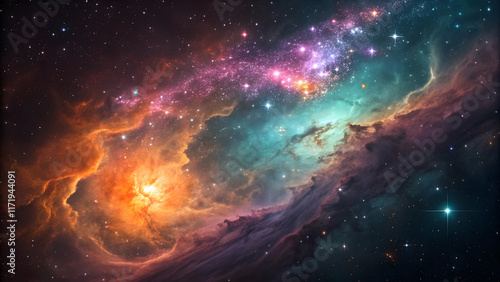 Colorful Nebula in Deep Space with Stars and Cosmic Gas Clouds