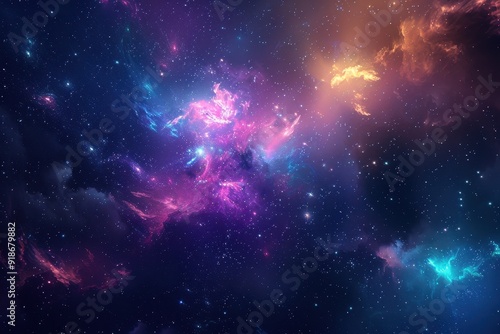 Colorful Nebula in Deep Space with Stars and Glowing Clouds