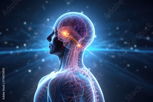 Colorful Nebula Neural Brain Cell Energy Connections, Brain Dots Pattern Neuronal Network, Vibrant fractal light Microscopic Mycelium Membran, Colored DNA neuron motley radiant medical human Mind axon