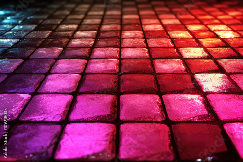background, neon, grid, glowing, tile, colourful, light, abstract, pattern, vibrant, illuminated, floor, texture, design, futuristic, bright, surface, pink, red, purple, orange, blue, gradient, shine, artistic, modern, digital, technology, decorative, aglow, square, geometry, arrangement, perspective, symmetry, dynamic, energy, atmosphere, mood, creative, visual, composition, aesthetic, innovation, style, contemporary, display