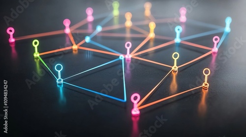 neon, network, game, piece, interconnected, glowing, line, reflective, black, surface, teamwork, concept, abstract, digital, tech, technology, connection, pattern, design, futuristic, modern, dynamic, high-coloured, colourful, illuminated, aglow, geometric, shape, tangled, intertwined, linked, integrated, synchronized, interactive, strategic, collaborative, innovative, creative, visionary, efficient, productive, visualisation, synergy, intelligence, strategy, innovation, efficiency