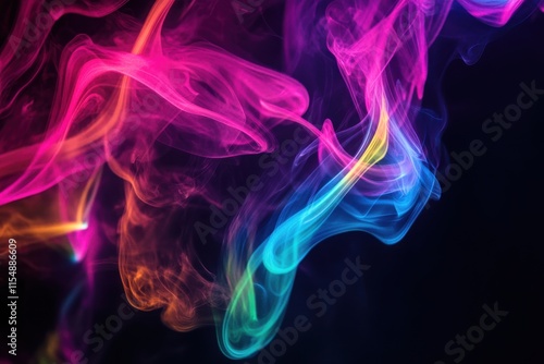 Colorful Neon Smoke Swirling on Black Background for Visual Effects and Design