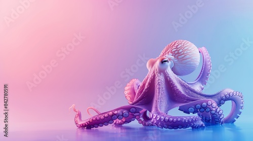 Colorful Octopus on Minimalist Gradient Background with Copy Space
