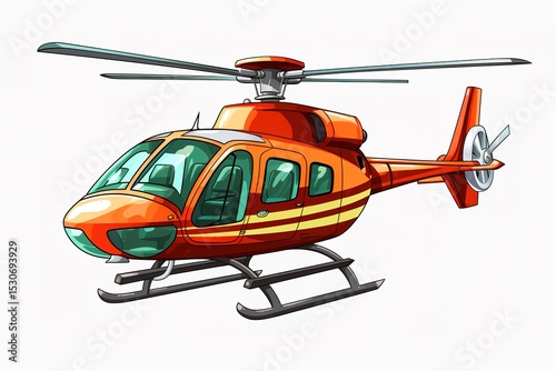 Colorful orange helicopter illustration isolated on white background ready for transportation purposes