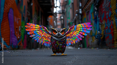 owl, colourful, graffiti, urban, street, art, creative, design, wing, many-coloured, patterned, street art, urban scene, city, alley, detailed, digital artwork, illustration, graphic design, high-coloured, vibrant, composite, composition, display, statuesque, artistic, impressive, fantastic, amazing, cute, bird, animal, nature, photo, image, artwork, fantasy, night, dark, contrast, bright, modern, contemporary, unusual, unique, intricate