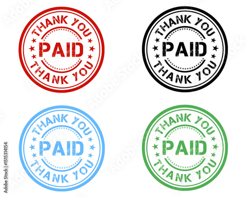 paid, stamp, seal, thank, approval, accepted, complete, payment, label, icon, round, rubber, certified, finished, done, processed, cleared, transaction, proof, confirmed, office, business, invoice, billing, receipt, success, green, red, blue, black, circular, vector, official, finance, digital, illustration, tags