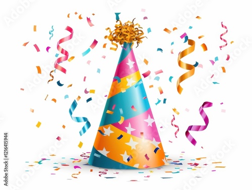 Colorful Party Hat with Confetti and Ribbons