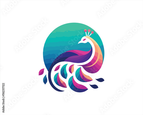 Colorful Peacock bird logo design icon vector illustration. Animal bird template.