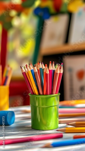colourful, crayons, art, classroom, table, learning, education, children, school, green, cup, drawing, supply, activity, children, design, bright, toy, material, creative, sharpened, object, optical, fun, display, organised, collection, many-coloured