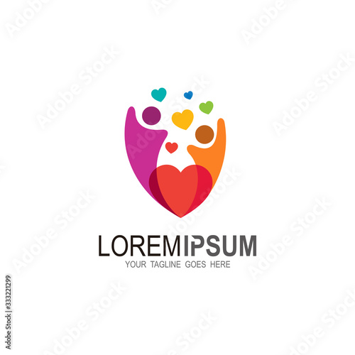 Colorful people and heart shape icon. Vector logo template. Love logo