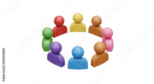 people, circle, teamwork, oneness, collaboration, diversity, colourful, group, connection, community, global, icon, three-dimensional, render, isolated, white, background, social, network, team, cooperation, support, partnership, together, communication, sharing, interaction, organisation, management, leadership, agreements, meeting, conference, business, corporate, symbol, signs, design, element, illustration, graphic, abstract, concept, idea, representation, human, figure, avatar, member