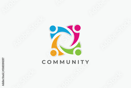 Colorful People Community Logo. Four Human Icon for Teamwork, group, network, social, together, family, friendship, partnership, connection, team, union, unity, society.