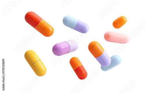 pill, capsule, medicine, colourful, vibrant, health, medicals, pharmaceutical, drug, treatment, medication, orange, red, yellow, blue, purple, pink, pastel, round, oval, pharmaceutical, illustration, graphic, isolated, three-dimensional, digital, vector, design, care, prevention, make well, therapy, relief, well-being, recovery, disease, disease, support, wellness, healing