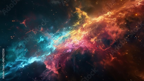 Colorful plasma field in deep space with nebula and stars - vibrant cosmic scene with intense energy and galactic background, ideal for sci-fi themes, astronomy concepts, and futuristic visualizations
