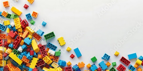 Colorful Plastic Building Blocks Scattered on White Background Illustration