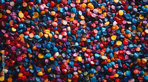Colorful plastic resin pellets, polymer texture background.