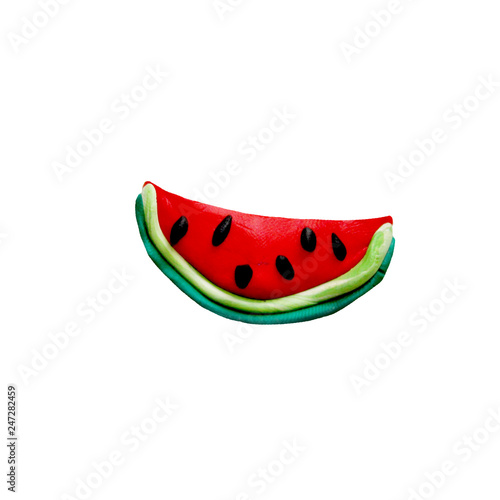 Colorful plasticine handmade 3D watermelon berry fruit icon isolated on white background
